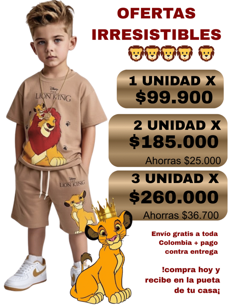 Por eso creamos el Conjunto Rey León Premium, una prenda que combina comodidad, estilo y la fuerza que inspira carácter desde la infancia.